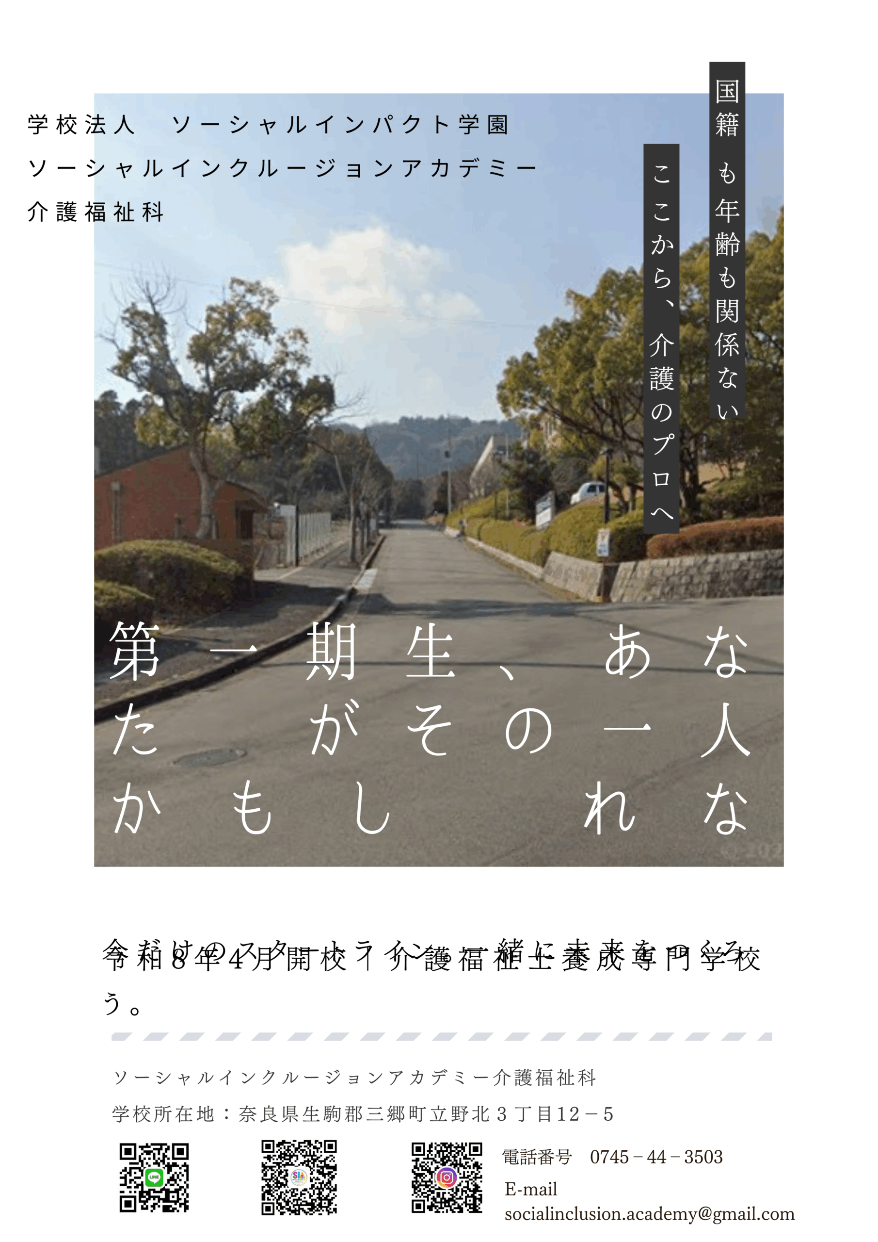 ソーシャルインクルージョンアカデミーは、令和8年4月に誕生する介護福祉士養成の専門学校です。この学校をつくった理由は、とてもシンプルです。